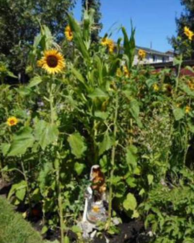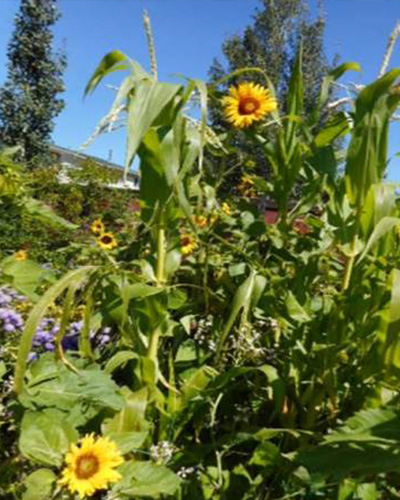 Celestial Roots is all about the Circle of Interdependence  – this one, in particular, has been spectacular with the corn towering above me – and the beans growing all around them and actually helping to hold them up with all the strong winds – The corn leaves got a bit spliced with one of the hell storms but overall they look amazing and the message is Stronger together and Gather with Grateful Hearts.